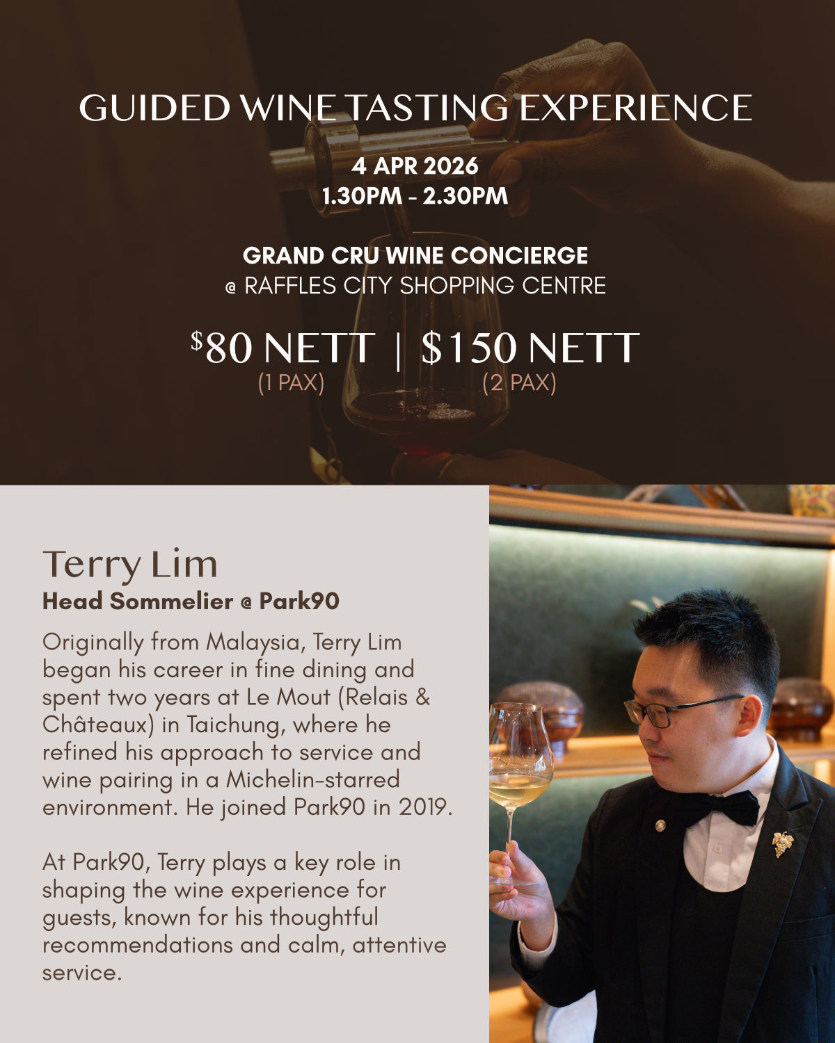 • Hosted by: Terry Lim, Park90 Head Sommelier