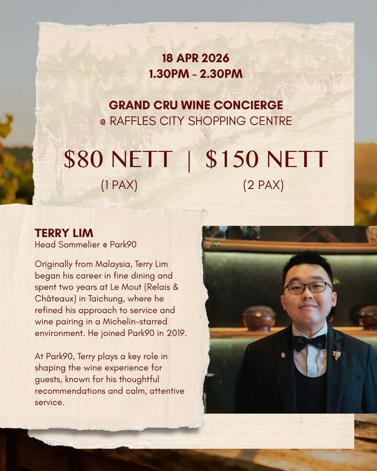 Hosted by: Terry Lim, Head Sommelier, Park90